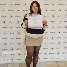 Naše žákyně, Marie Bezlojová, dosáhla obdivuhodného úspěchu. V Ústředním kole olympiády v anglickém jazyce, které se konalo 29.5.2025 na půdě VŠE v Praze, obstála v konkurenci dalších 13 nejlepších žáků z celé České republiky a při odpoledním slavnostním ceremoniálu si došla pro 1. místo.