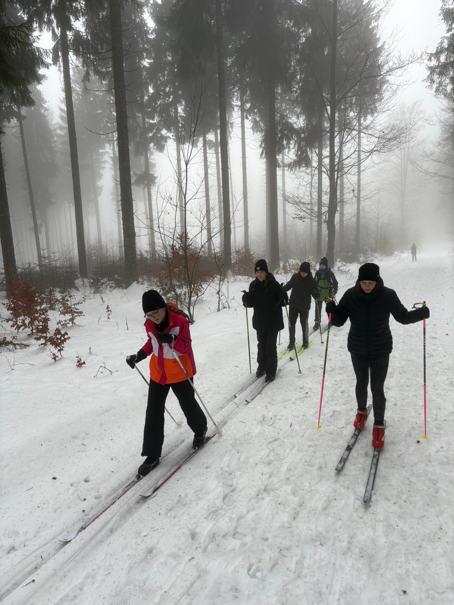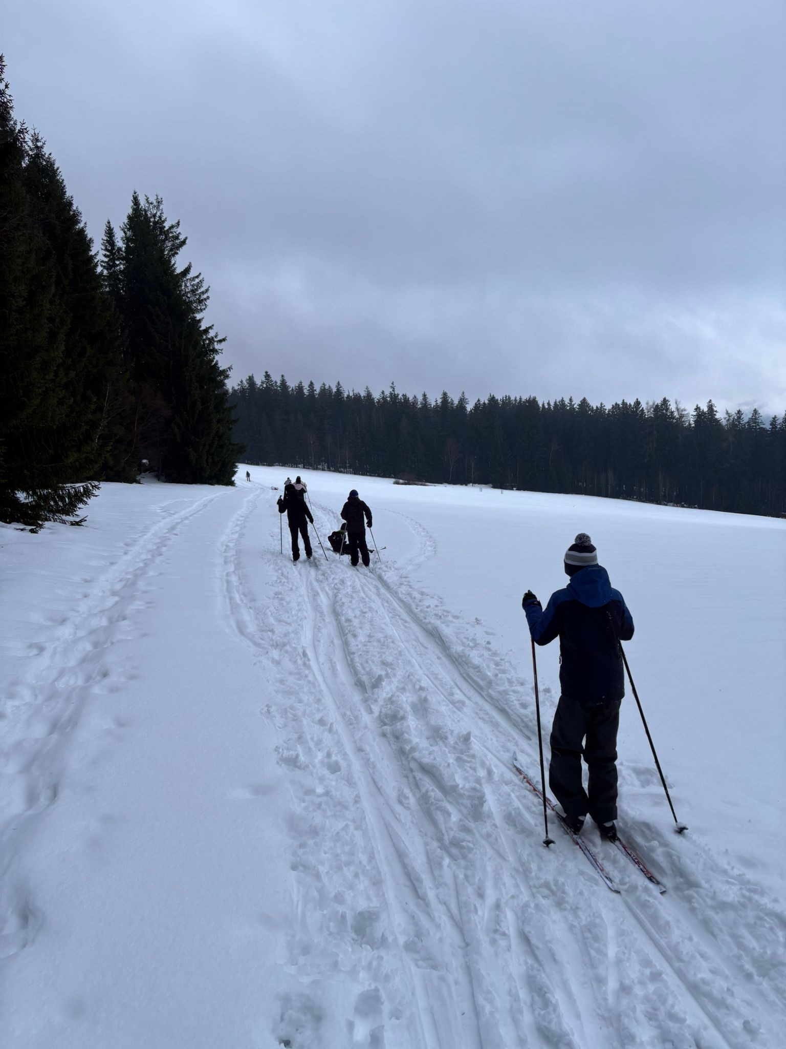 V polovině kurzu přišla obleva, díky které jsme si mohli vyzkoušet jízdu na různých typech struktury sněhu. Díky dostatku sněhu jsme zařadili také výuku běžeckého lyžování v krásných okolních terénech.