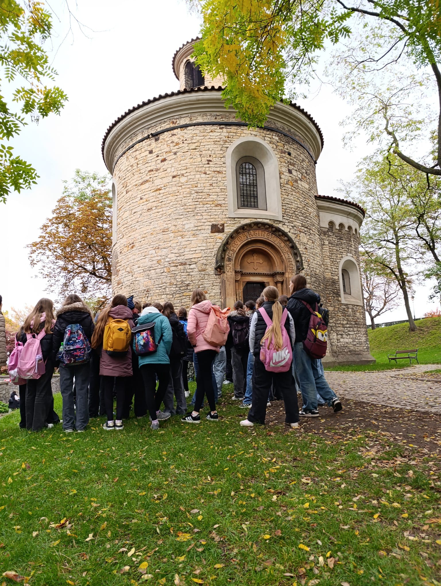 Napříč Vyšehradem si žáci 7. ročníku prošli pověstmi a legendami staletími až do současnosti. Velmi aktivně doplňovali anglicky mluvící lektorku a prokázali nejen znalost angličtiny, ale také české historie. Při bojovce s mapou v ruce předvedli svou soutěživost a touhu po výhře. Zastavili jsme se u rotundy sv. Martina, baziliky sv. Petra a Pavla, Myslbekových soch, na Slavíně a na Vyšehradských hradbách. Žáci si rozšířili znalosti z české historie a geografie a také si zvýšili sebevědomí ze svého porozumění zahraniční lektorce. Sedmáci byli fantastičtí a věříme, že si všichni domů kromě suvenýrů přivezli také příjemný zážitek z dnešního dne.